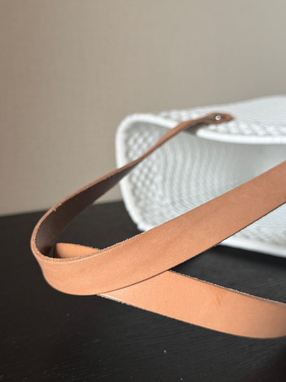 本体部分はメキシコの生産者と共に何度も話し合って作りました。ハンドルは国産の栃木レザーを使用しており、確かな品質と風合いを見せてくれます。