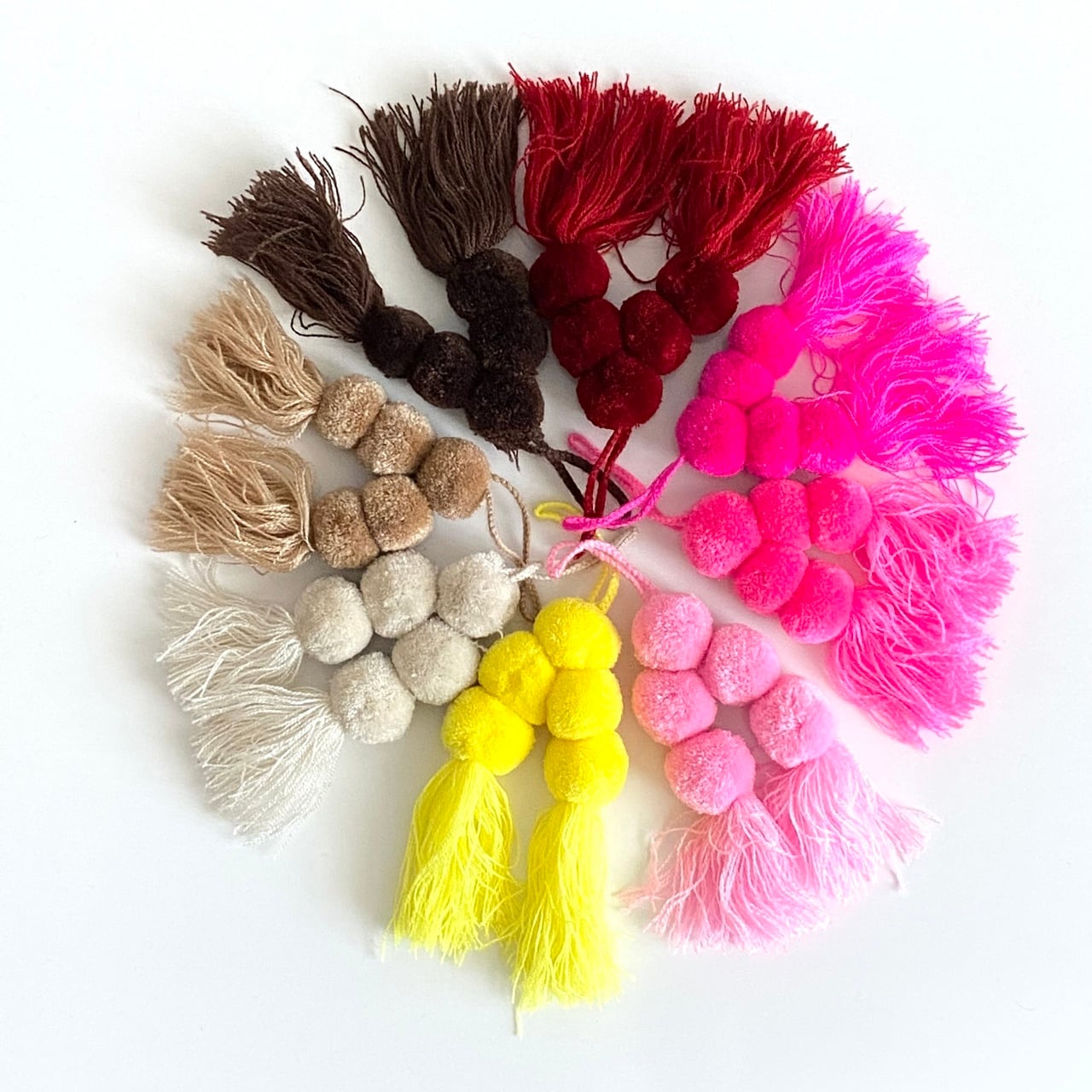 ポンポンチャームもメキシコ製。こちらはバッグと同時購入の場合は3個まで1200円でご提供しております。